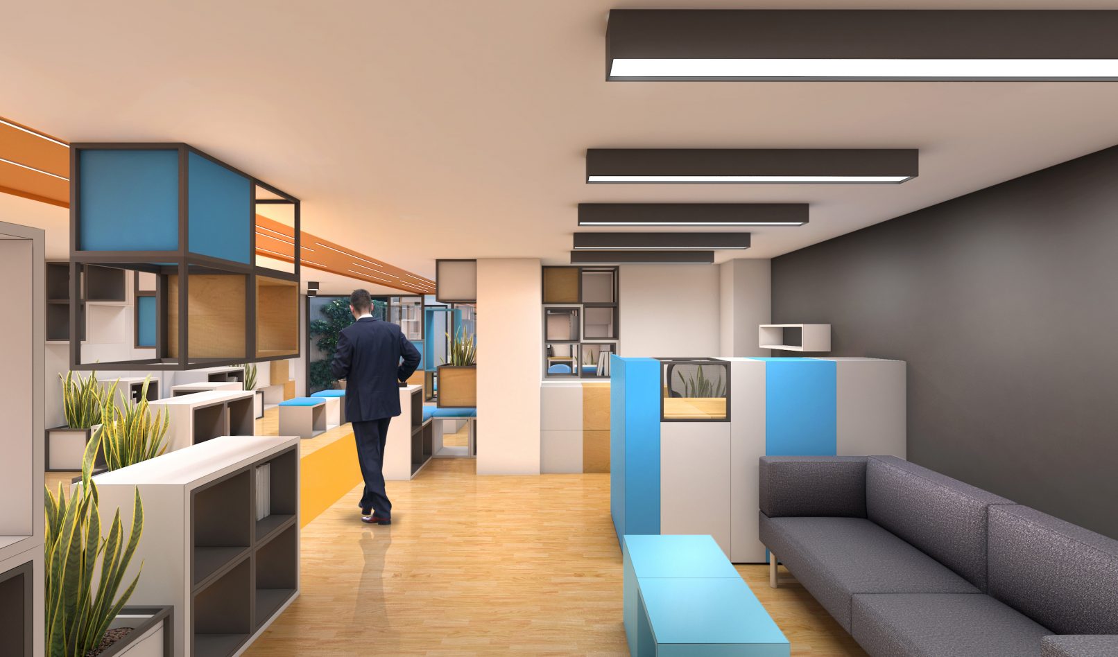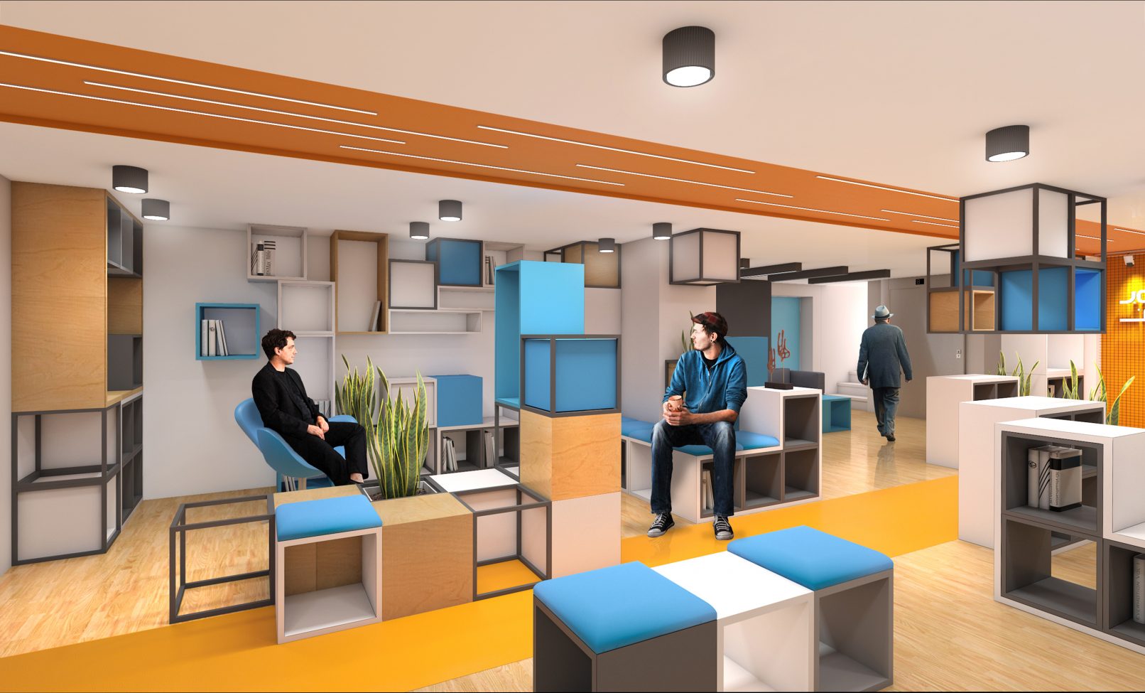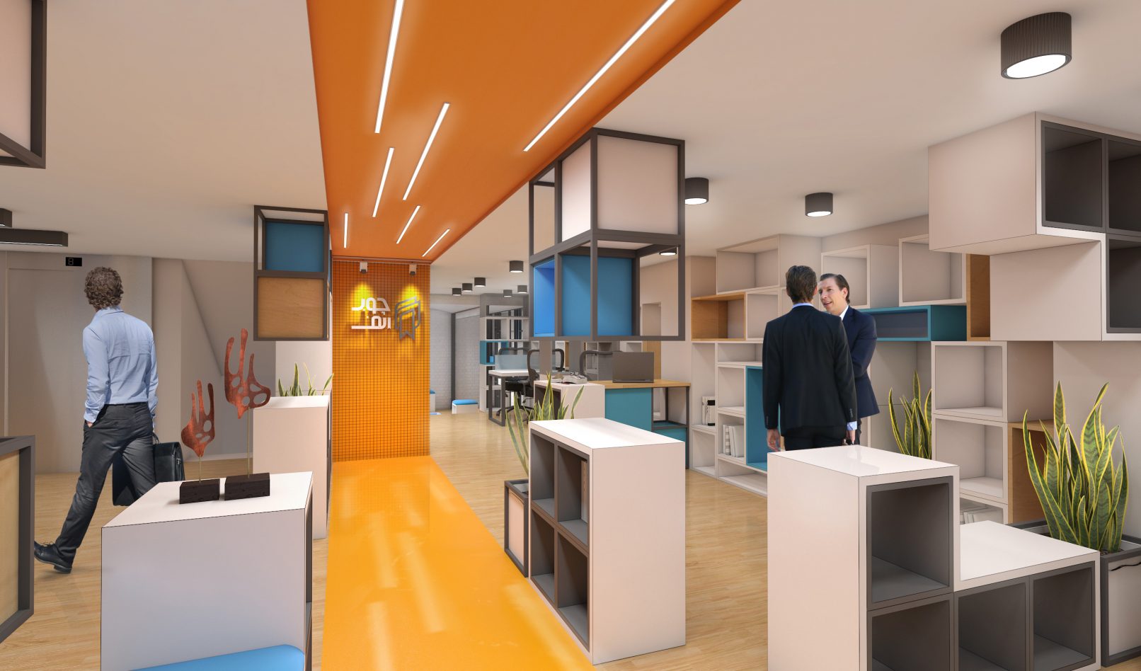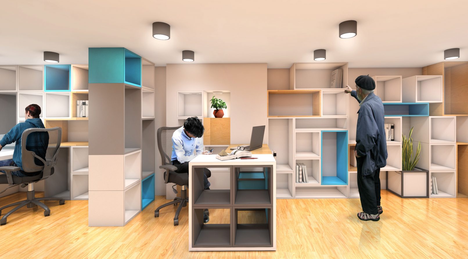 پروژه از اختصاص فضای لابی یک ساختمان اداری جهت ایجاد کافه کتاب برای مجموعه چوب الف آغاز شد. ایجاد فضایی پویا و انعظاف پذیر با توجه به شرایط خاص عملکردی مد نظر کارفرما جمع بندی رویکرد طراحی در این پروژه بود. در طراحی منتخب کارفرما از بین ۳ گزینه طراحی شده، طرح فعلی بود که در آن قفسه های کتاب شکل دهنده اصلی فرم معماری کافه هستند. این ویژگی قابلیت تغییر و انعطاف پذیری بالایی به طراحی می بخشد.